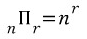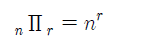 - 서로 다른 n개 중 r개를 순서를 고려하여 선택하는데 이미 선택한 것을 중복해서 선택하는 것을 허용