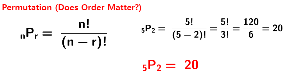- 서로 다른 n개 중 r개를 순서를 고려하여 선택하는 것